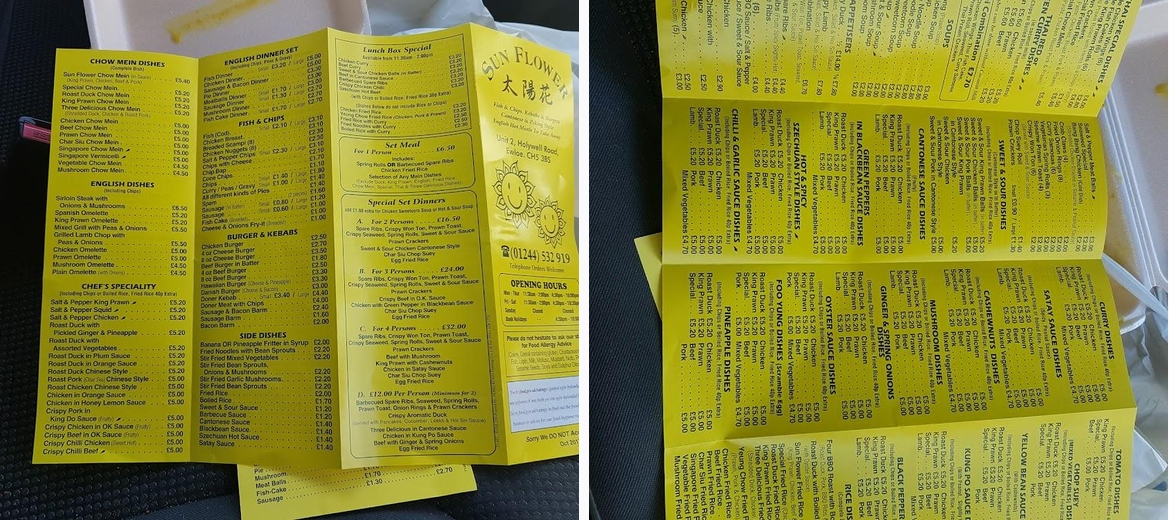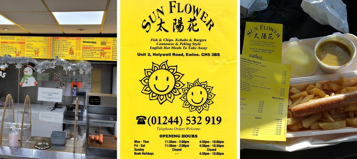 Enjoy delicious and affordable Chinese takeaway at Sunflower in Ewloe, Deeside. Savor our popular dishes like pepper curry, Szechuan specialties, and traditional chippy favorites. Perfect for lunchtime cravings! Visit us at Unit 2, 2 Holywell Rd or call +44 1244 532919 for orders.